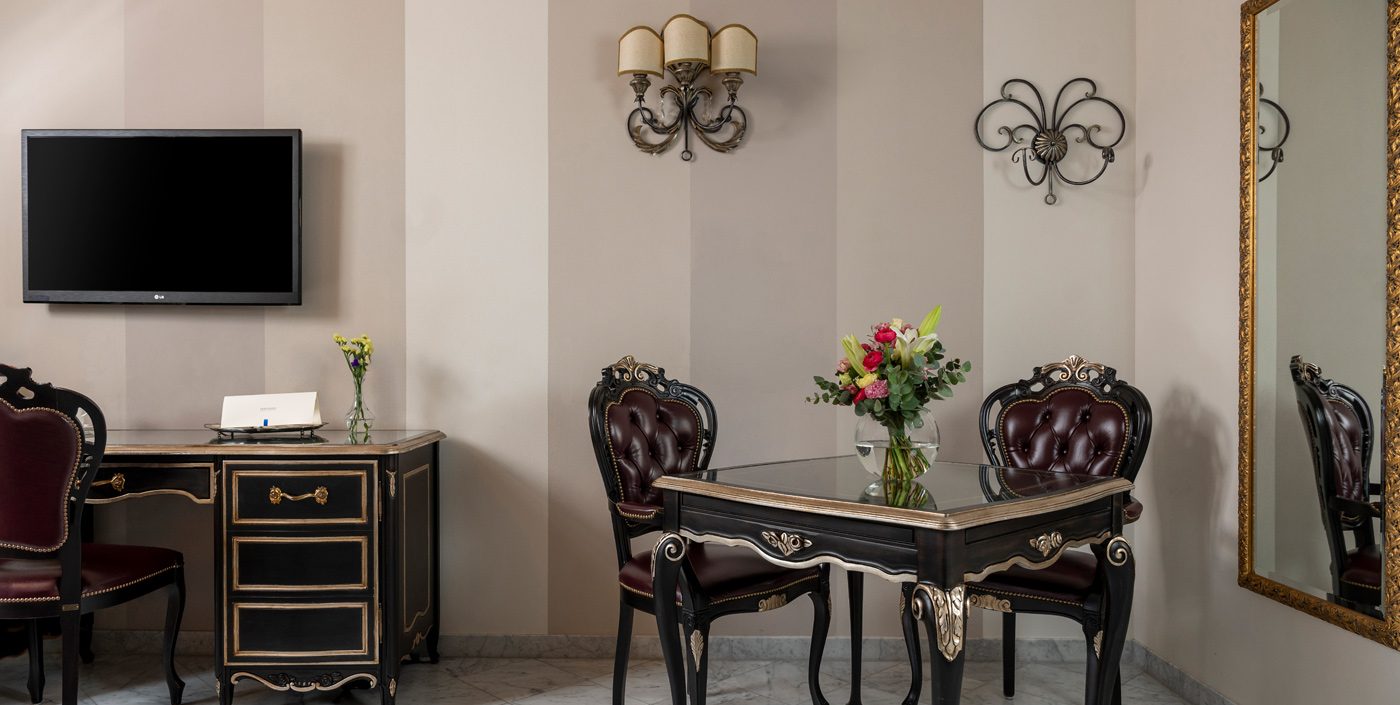 A leap into history finely reinterpreted in a modern key. Some Deluxe Rooms have a balcony with a garden view.